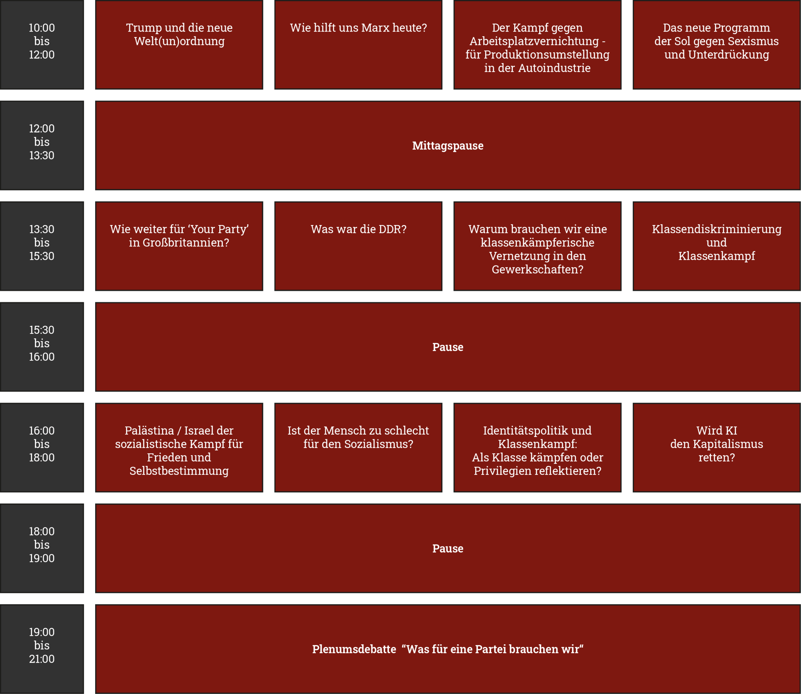 In den letzten Jahren veranstalten wir in vielen Städten erfolgreiche kleinere Sozialismustage, doch ab 2026 sind wir zurück auf der großen Bühne! Am Osterwochenende finden die ersten bundesweiten Sozialismustage seit 2019 statt! Und alle sind willkommen, die mit uns der Meinung sind: